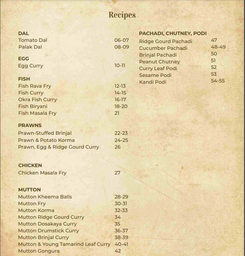 Devika has been inspired by her mother in law’s passion for cooking. Warm lingering hospitality through food, day after day, propelled Devika to collate her Mother in law’s  ageold traditional food recipes as a token of her appreciation, respect and gratitude.